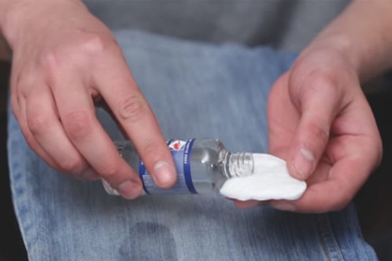 Этот метод подходит для прочных тканей, но не рекомендуется для темных и цветных, так как ацетон может повредить их оттенки. Для цветных и темных брюк лучше воспользоваться столовым уксусом. Замочите загрязненный участок в уксусе на полчаса, затем промойте под струей воды; если необходимо, повторите процедуру. Для белых штанов из хлопка можно использовать «Белизну». Обработайте загрязненное место зубной щеткой, оставьте на 10 минут, а затем тщательно промойте.