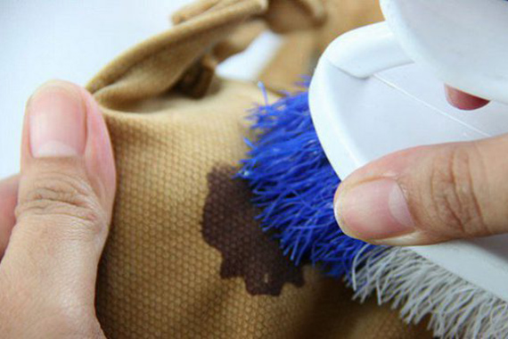 - Уберите губку и аккуратно потрите загрязненное место щеточкой;