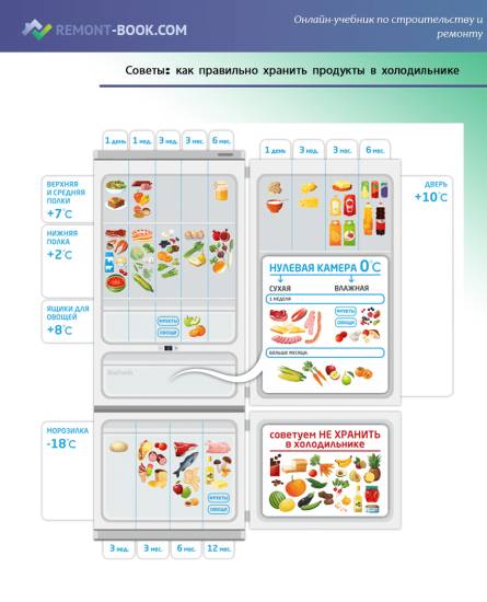 В холодной зоне не рекомендуется хранить овощи, фрукты, сливочное масло и плавленый сыр, тут они затвердеют. За счёт поддержания разного микроклимата в отсеках агрегата можно хранить в нём многие группы продуктов одновременно, не переживая о том, что они могут испортиться.