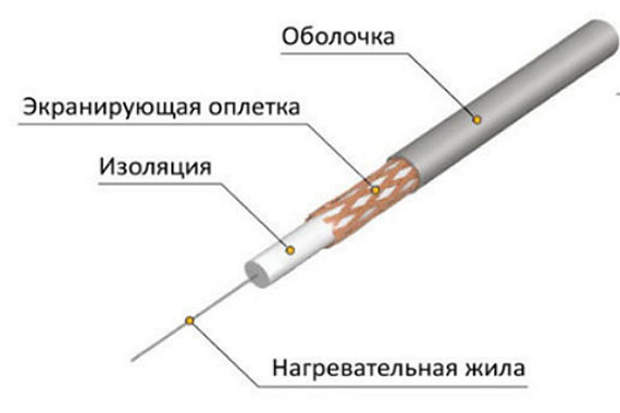Одножильный нагревательный кабель. Состоит из двух жил, одна из которых проводит ток, а другая выполняет функцию нагревательного элемента. При укладке не требуется соединять оба конца кабеля.