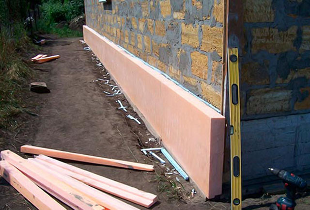 Утепление фундамента в целом не отличается от других видов теплоизоляции. Работы следует проводить в теплое время года и при сухой погоде, так как выполнение утепления на мокром фасаде строго запрещено.