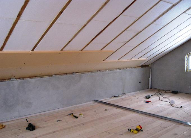 Наиболее подходящим вариантом для утепления является пенопласт, так как он недорогой и прост в установке. В случае протечек крыши и появления избыточной влаги, он сможет задержать ее, предотвращая попадание в мансарду, однако со временем это может негативно сказаться на его свойствах.