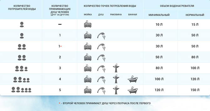 | 80-120 литров: Для 2-3 человек. | Позволит принять душ нескольким людям подряд. | |