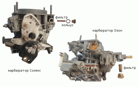 Сетчатый топливный фильтр в карбюраторах Озон и Солекс