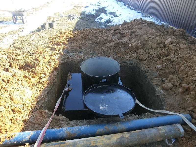 Сверху резервуар закрывается герметичным люком, который предотвращает попадание талых и дождевых вод внутрь. В боковых стенках имеются отверстия для ввода кабелей и вывода водопроводной трубы.