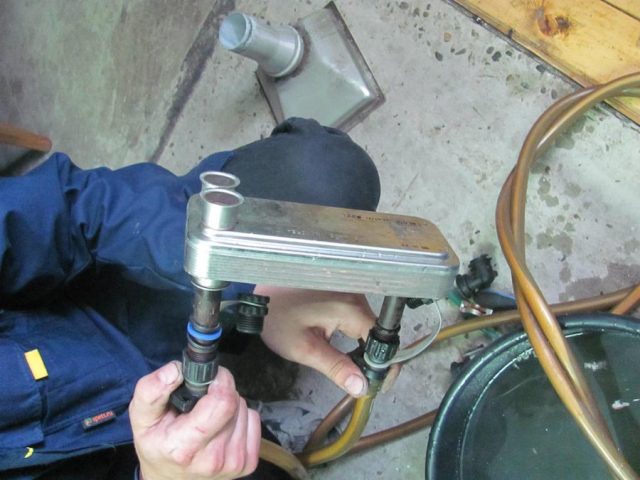 Громкие звуки могут свидетельствовать о высоком уровне накипи в теплообменниках. Для устранения этой проблемы необходимо снять теплообменник и провести его очистку. Недостаточный нагрев воды также может быть следствием этого фактора.