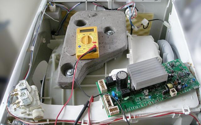 - Проверьте электропроводку стиральной машины с помощью мультиметра, очистите окисленные контакты и восстановите обрывы. Убедитесь, что клеммы надежно зажаты.