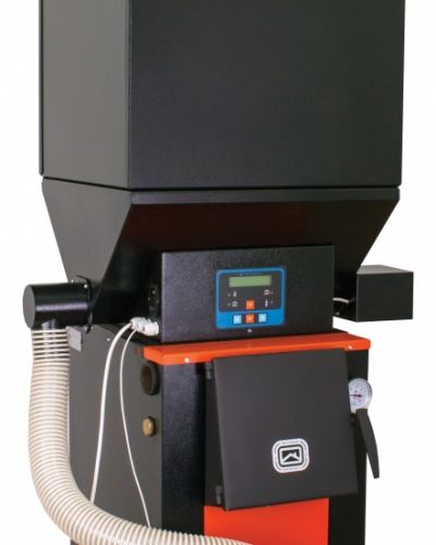 Такой подход значительно снижает тепловые потери, что, в свою очередь, почти вдвое уменьшает расход топлива. Данный тип твердотопливного котла может работать на различных видах кускового топлива: дровах, брикетах, угле разных марок (а, д, б и другие). Благодаря широким просветам в колоснике, необходимость в частой чистке отпадает. Чтобы котел U25 мог функционировать на пеллетах, требуется установить пеллетную горелку Пеллетрон 15МА.