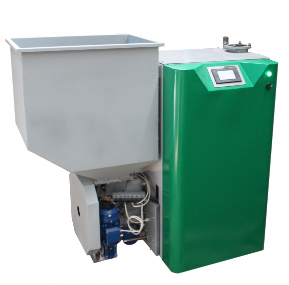 В ассортименте представлены различные модели с мощностью от 15 до 100 кВт. Котлы функционируют при давлении в системе 3 атм и имеют коэффициент полезного действия около 90%. Модель Зота 15 А оснащена хранилищем объемом 190 кг и за 10 часов работы потребляет 36 кг топлива. Мощность котла можно регулировать в зависимости от объема подаваемого топлива. В случае отключения электроэнергии, есть возможность переключить котел на использование угля или дров.