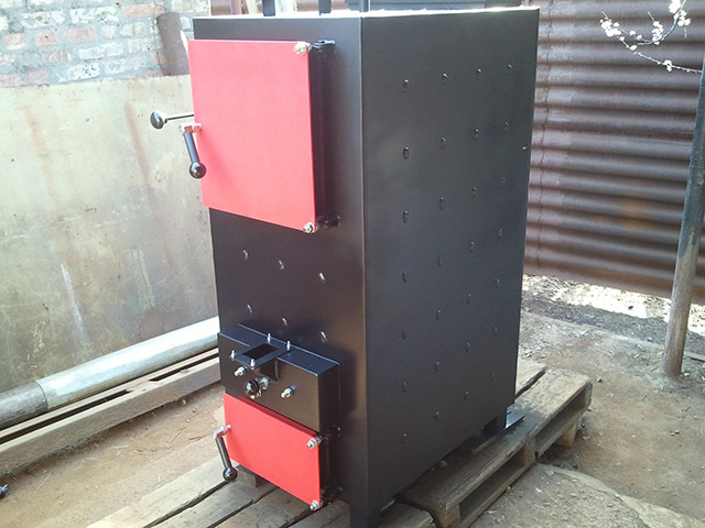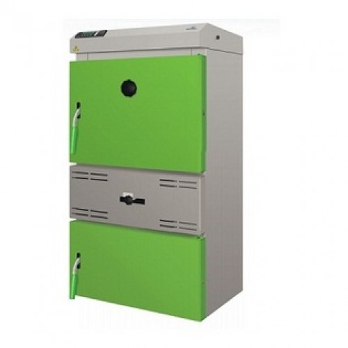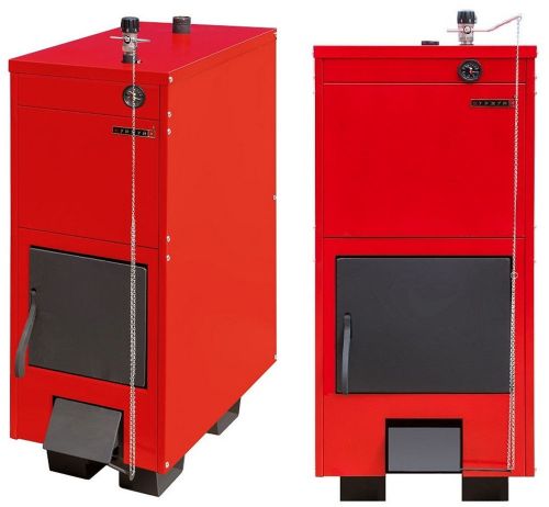Котел может использовать практически все виды твердого топлива, а также дрова с влажностью до 40%. Глубина топки позволяет загружать бруски длиной до 37 см. Время, необходимое для выхода в режим пиролиза, составляет около 10 минут. Установка производится на пол, размеры котла составляют 478*1126*981 мм, а вес достигает 170 кг.