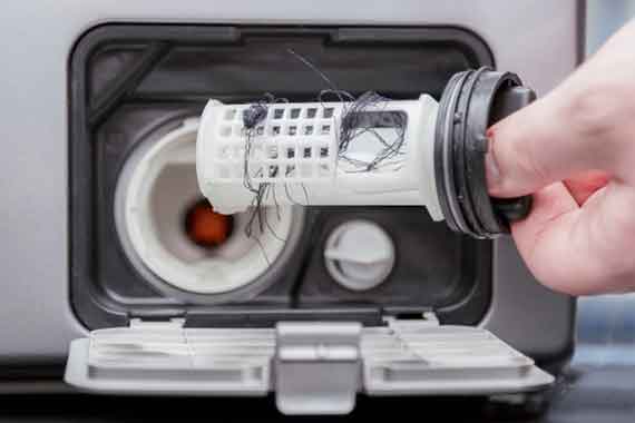 Сам фильтр выкручивается против часовой стрелки и промывается. Если сливная система сильно загрязнена и снять фильтр не удается, необходимо демонтировать одну из стенок машины и прочистить систему со стороны помпы. После очистки фильтра стоит проверить и при необходимости прочистить отверстие, в котором он установлен, так как грязь и мусор могут накапливаться и там.