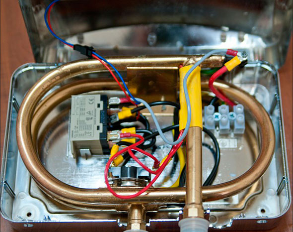- Неправильная установка — открытые проточные водонагреватели устанавливаются в закрытые системы водоснабжения. Основное отличие открытых (безнапорных) устройств от напорных заключается в том, что открытые предназначены для подключения к одной точке водоразбора, тогда как напорные могут быть подключены к стояку и обслуживать несколько точек одновременно.