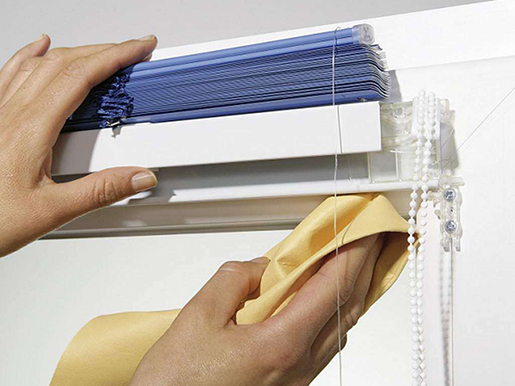 - Если загрязнения незначительные, можно воспользоваться тряпкой для пыли и просто протереть жалюзи. Однако стоит учесть, что в процессе уборки пыль может разлететься по комнате.