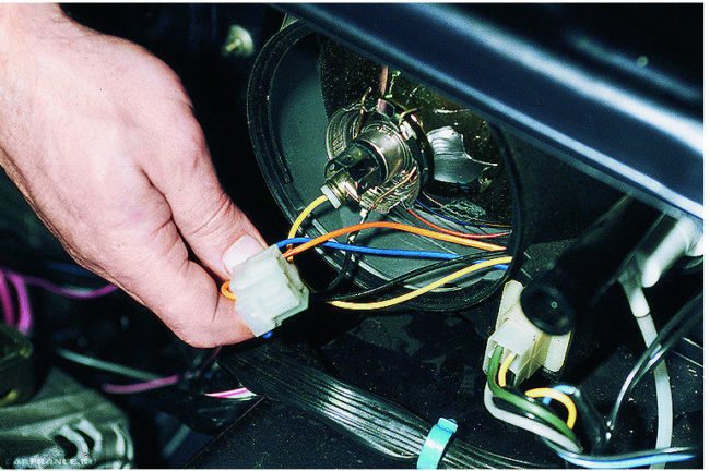 - Отключите от фар провода питания.