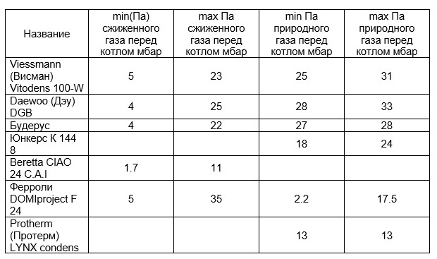Минимальное и максимальное давление газа перед котлом
