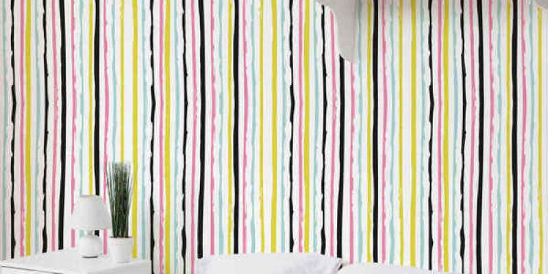 Подбор полотен с различными рисунками — отличное средство для деления помещения на зоны. Разноцветные полосы можно соединить с оттенками главного фона.