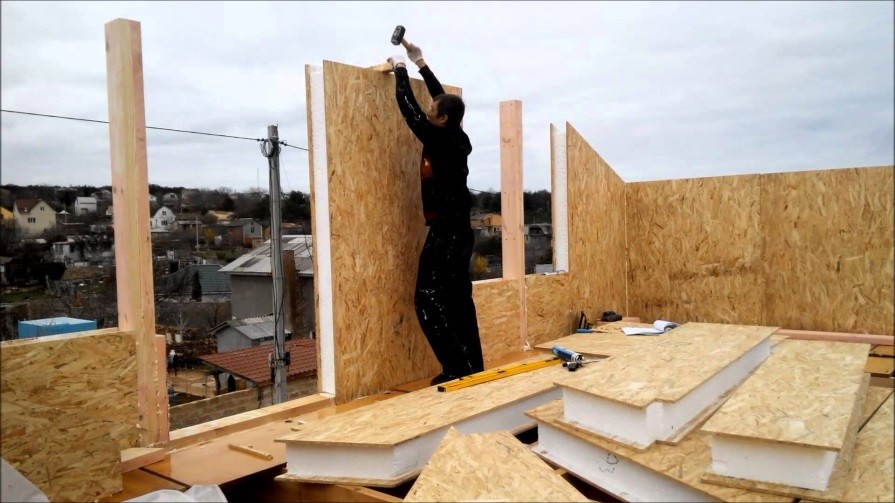 Каркасные дома сегодня начинают набирать небывалую популярность – у нас пока не так сильно, а вот на западе спрос на них очень большой. Вариантов исполнения таких построек очень много. Например, дома из ОСП панелей, как показано на фото выше. Возводятся они в очень короткие сроки – не больше месяца, но и их сразу отделывать не рекомендуется. Несмотря на то, что используются панели как основной материал и пенопласт в качестве утеплителя, конструкции все равно набирают по окончании неплохую массу, поэтому тоже будут давать некоторую усадку. При этом каркас будет отзываться изменениями геометрии дома.