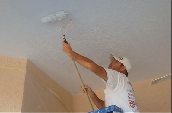 - Затем очищенную поверхность потолка нужно обработать грунтовкой, предпочтительно на акриловой основе. На этом этапе не стоит экономить на качестве грунтовки, так как некачественный состав может привести к отслоению утеплителя и покрытия в будущем.