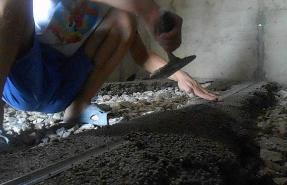 - После этого заливается цементный раствор с уклоном до пяти градусов.