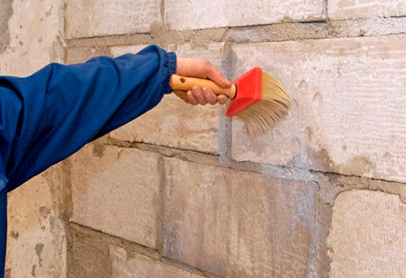 - Для улучшения адгезии рекомендуется обработать стены специальной грунтовкой.