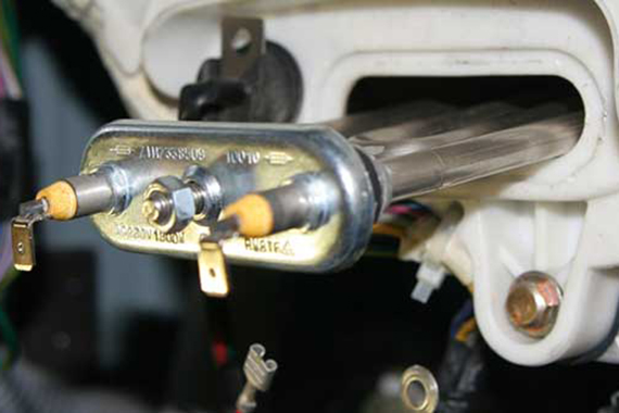 - Проверьте все соединения, ведущие от ТЭНа, осмотрите их визуально. Из-за вибрации провода могут перетереться, поэтому прозвоните цепь. При необходимости восстановите поврежденные элементы.