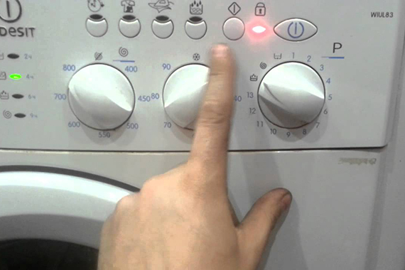 Для моделей без экрана начинает мигать индикатор рядом с кнопкой «Быстрая стирка» (Indesit Wisn 82, Indesit Wisn 87, Indesit Witl 106). Это указывает на неисправность двигателя. Мотор не запускается, барабан не вращается, и нарушена цепь таходатчика. Автоматика пытается подать воду и начать процесс стирки.
