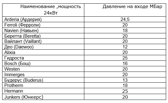 Еще одним вариантом решения проблемы является замена газового котла на электрический. Хотя эксплуатация электрического котла может оказаться дороже, вы получите стабильное тепло и горячую воду. Ниже приведены значения давления газа на подаче для некоторых моделей.