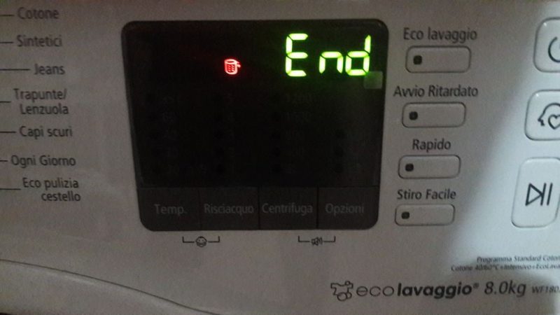 Как правило, после завершения стирки, через две-три минуты замок должен автоматически разблокироваться, и на экране Samsung появляется сообщение «END». Если после этого индикатор продолжает мигать, отключение устройства от электросети не решает проблему.