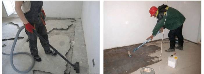 - Если на полу остались следы от моющих средств, использованных в процессе подготовки, их следует тщательно удалить.