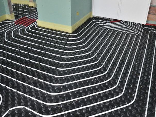 Для системы водяного теплого пола с плиточным покрытием идеально подойдет формованный пенопласт с высокой плотностью. Если он не имеет отражающего слоя, обязательно следует установить промежуточный слой из алюминиевой фольги.