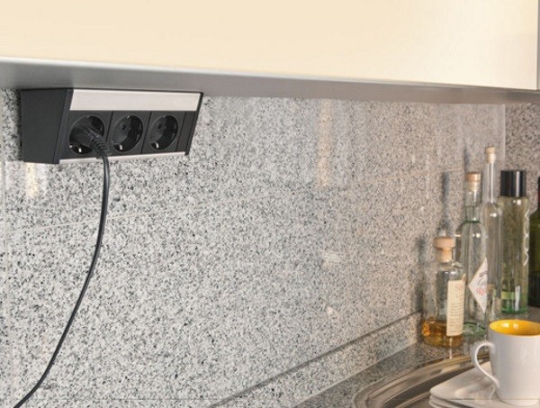 Одним из современных решений является потайная розетка. Это разновидность скрытой розетки, которая, благодаря специальному механизму, выдвигается над столешницей. Однако у нее есть недостаток — ограниченная мощность. Такие розетки не подходят для приборов с мощностью 1,5 кВт и выше. Тем не менее, осветительные устройства обычно не превышают эти параметры.