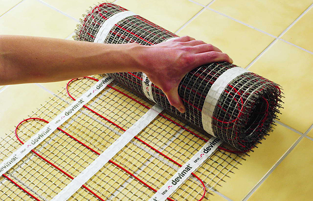 Принцип подключения данного устройства схож с ранее описанным методом, однако имеются некоторые технические различия. Тепловой мат представляет собой нагревательный кабель, закрепленный на специальной пленке с заранее установленным шагом укладки. Поэтому пользователю нужно лишь определить обогреваемую площадь и необходимую мощность.