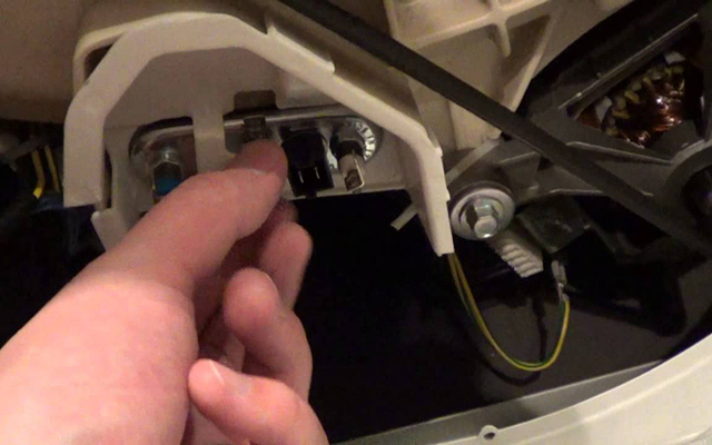 После демонтажа задней крышки ТЭН обычно находится в нижней части бака. У нагревателя могут быть две или три клеммы для подключения проводов. Если есть средняя клемма, она чаще всего зелено-жёлтого цвета и предназначена для заземления.