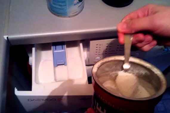 - Насыпьте лимонную кислоту в отсек для стирального порошка в нужном количестве;