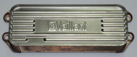 Пластинчатый теплообменник — некоторые котлы оборудованы битермическим теплообменником в качестве основного элемента, как, например, Висман Vitopend. Внешне он напоминает стандартный теплообменник, но внутри трубы, по которой движется теплоноситель, находится более тонкая трубка, по которой проходит водопроводная вода.