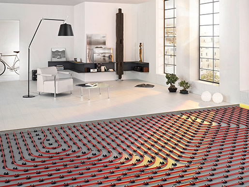 Такой способ обогрева можно применять под любое напольное покрытие. Благодаря установке датчиков система теплого пола может саморегулироваться: при повышении температуры воздуха, например, от солнечного света, температура теплоносителя снижается.