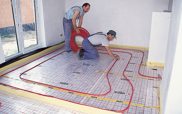 При подключении к системе отопления для достижения качественного прогрева пола вам понадобится установить циркуляционный насос, мощность которого следует рассчитывать исходя из площади, которую необходимо отапливать. Если ваша квартира находится на первом этаже, обязательно выполните изоляцию с помощью экструдированного пенополистирола, толщина утеплителя должна составлять не менее 5 см, предпочтительно выбирать материал с фольгированной стороной.