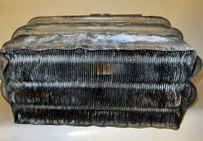 Можно провести очистку и более экономичным способом самостоятельно, без использования специализированных средств. Для этого нужно снять радиатор и полностью слить из него воду. Чистка осуществляется с помощью покупного реагента или самостоятельно приготовленного раствора на основе уксуса или лимонной кислоты (150 грамм кислоты растворить в 750 мл горячей воды). Радиатор помещается в емкость, заполненную на одну треть водой, и труба теплообменника заполняется приготовленным раствором. Вливать следует в трубу с конца нижнего витка, чтобы вытеснить весь воздух. Затем установите емкость на плиту и доведите до кипения, кипятите около пятнадцати минут, после чего отключите и дайте остыть. После этого установите радиатор на место и подключите к трубе, подводящей воду к выходному патрубку теплообменника, присоедините шланг, а другой конец опустите в раковину или другую емкость. Откройте водяной кран, и проходящая вода вытеснит раствор вместе с накипью. При необходимости повторите процедуру.