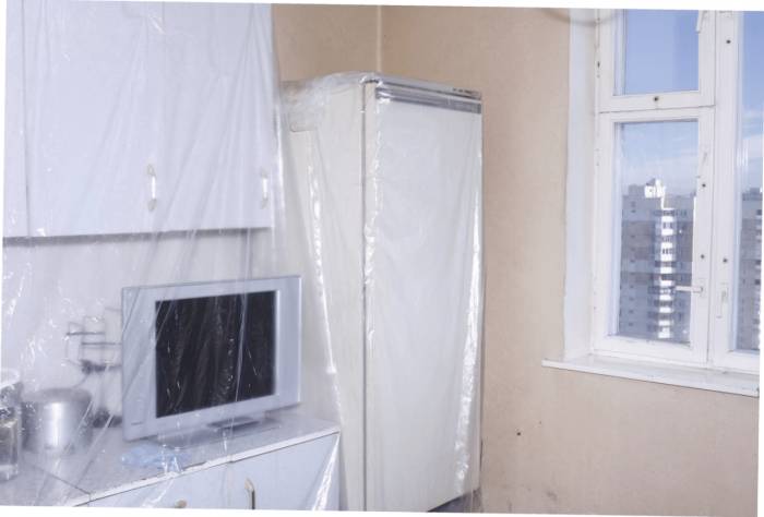 Шаг 1. В первую очередь следует вынести всю мебель и технику из кухни, так как в процессе ремонта они могут испачкаться.
