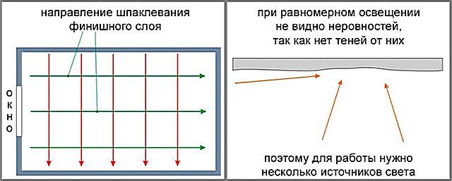 - Если вы собираетесь подготовить стены для наклеивания обоев с очень тонкой основой, важно постоянно следить за равномерностью покрытия, используя источники света с разных сторон.