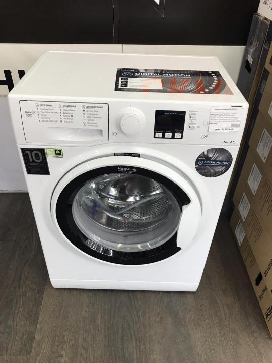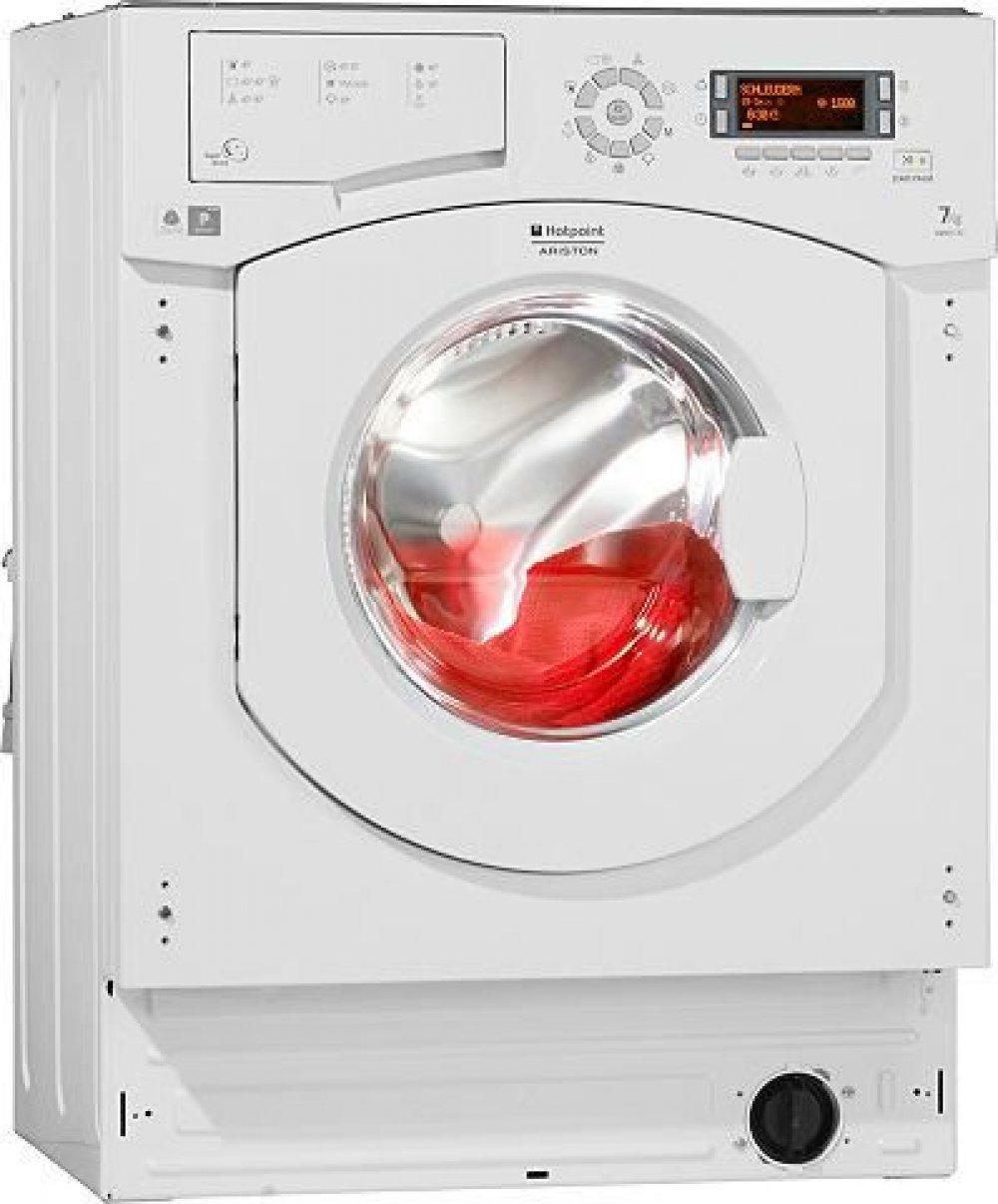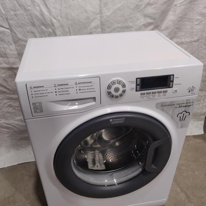 Эта модель из линейки Хотпоинт отличается высоким качеством, но и ценой, которая выше средней. Она способна загрузить до 7 килограммов сухого белья. Устройство оснащено цифровым дисплеем и относится к классу энергопотребления «А++». Эффективность стирки соответствует классу «А». Максимальная скорость вращения барабана достигает 1200 оборотов в минуту. Модель имеет частичную защиту от протечек и предлагает 16 предустановленных программ для различных режимов стирки.