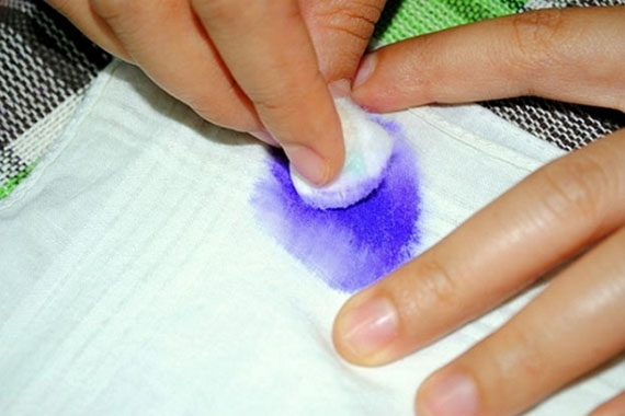 Также можно воспользоваться обычным лаком для волос, который эффективно «притягивает» чернила. Распылите немного лака на загрязненное место и промокните ватным диском. Повторяйте эту процедуру несколько раз, пока не удастся полностью удалить пятно.