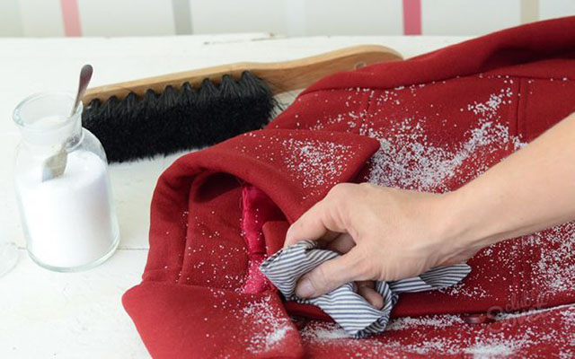 Не забывайте тщательно отжимать губку, а затем протрите очищенные места чистой водой. Чтобы избавиться от неприятного запаха, обработайте изделие паром с обеих сторон. После этого повесьте его проветриваться на свежем воздухе, избегая прямых солнечных лучей.