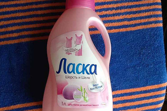 - Рекомендуется использовать специальные гели для стирки, если их нет, можно воспользоваться хозяйственным мылом в жидком виде для удобства.