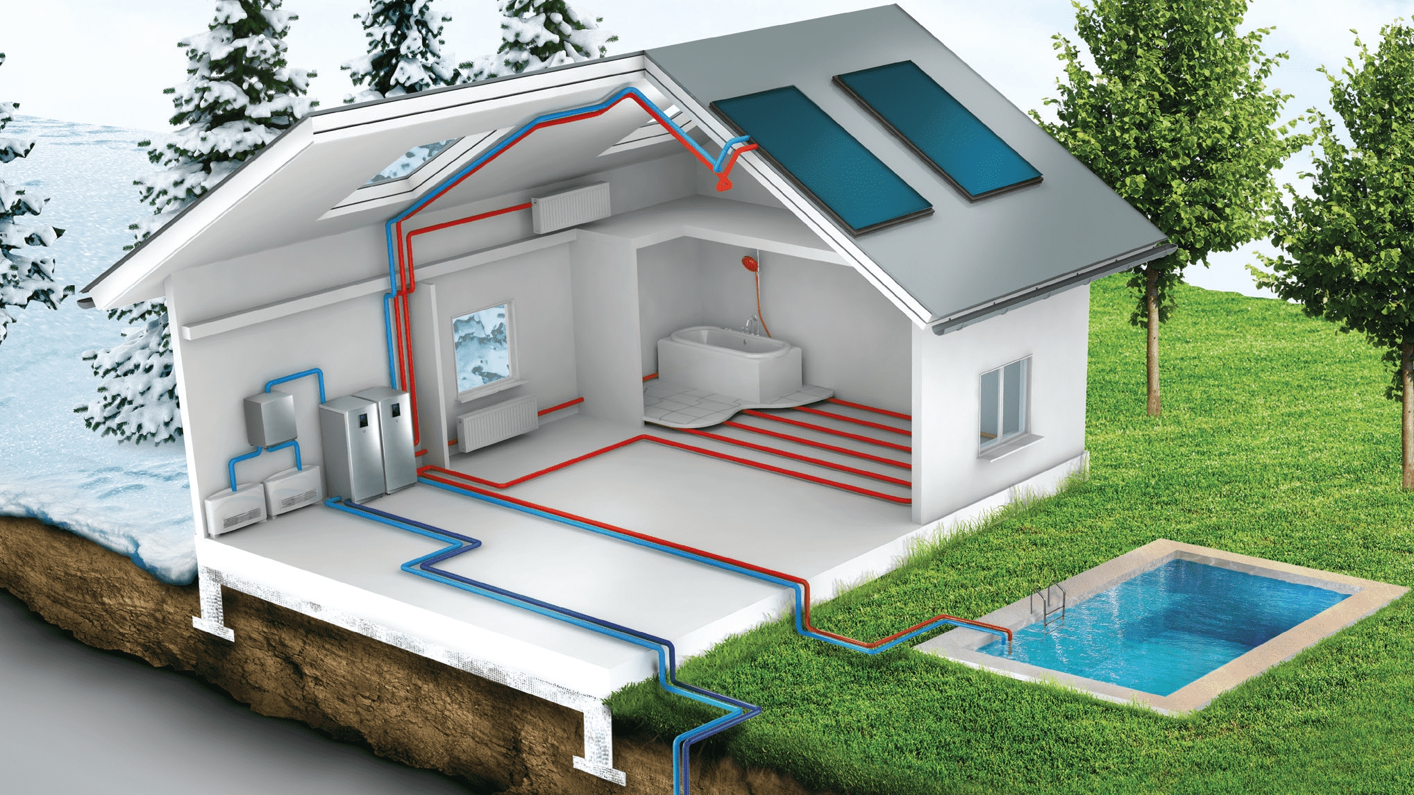 Тепловая энергия, необходимая для создания комфортных условий в частном доме, извлекается из окружающей среды с помощью термонасоса. Низкотемпературная энергия, которую концентрирует насос, затем передается в систему отопления.