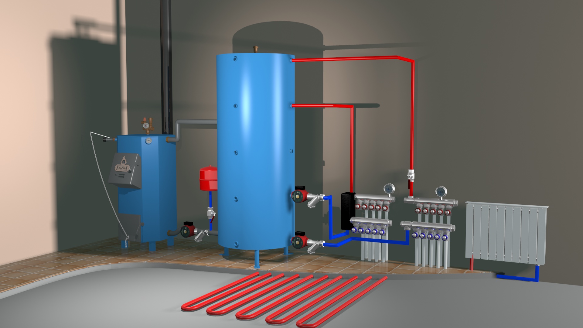 При установке твердотопливного котла необходимо также установить буферный бак, который поможет контролировать температуру и обеспечит корректную работу системы.
