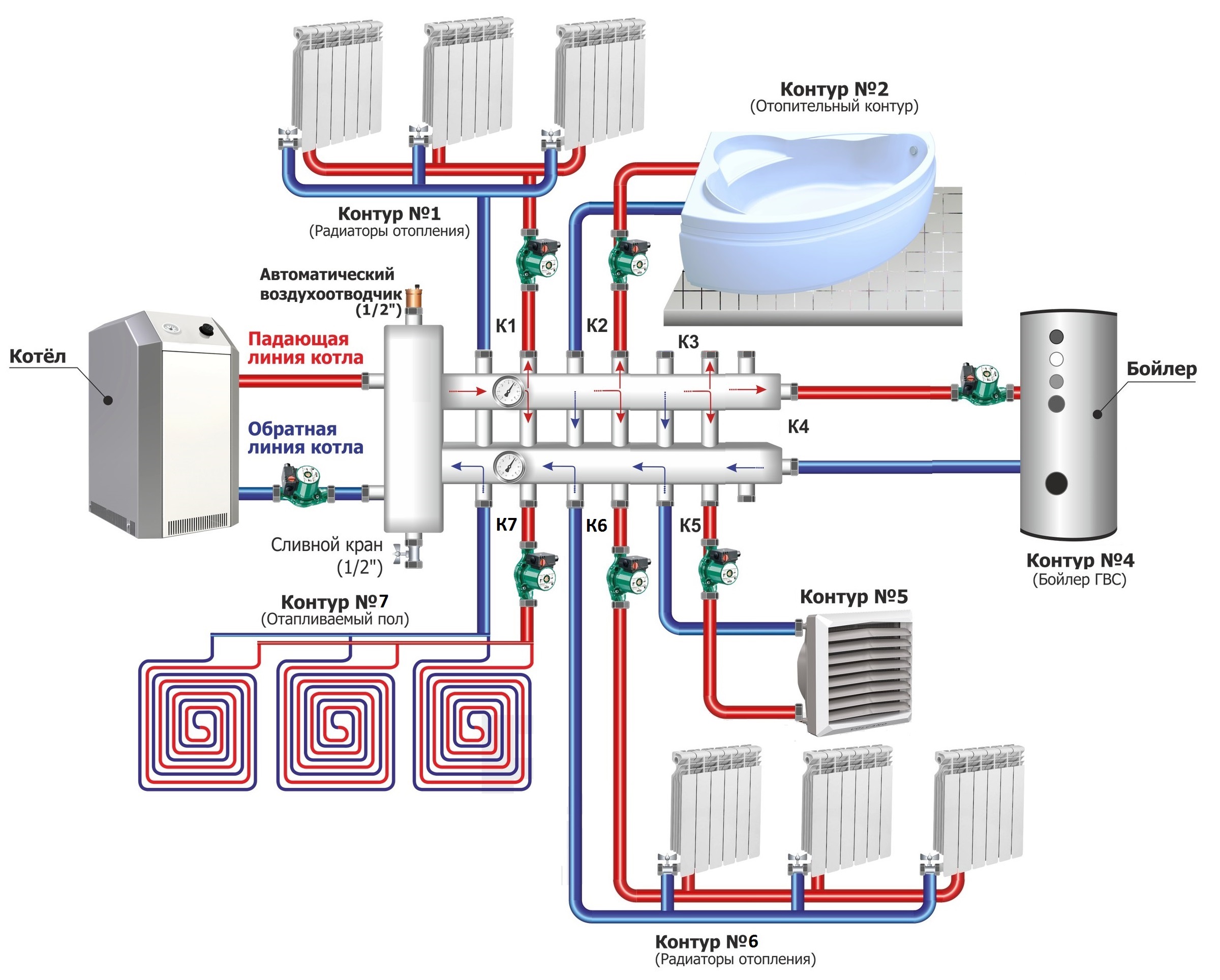 - Обеспечение баланса между котлом (котельным контуром или основным контуром) и отопительной системой (вторым контуром);