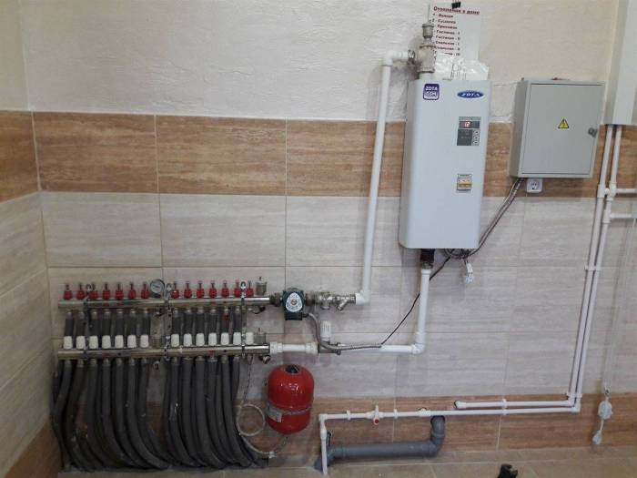 Если пространство для установки электрического котла ограничено, его можно подключить к теплому полу: напрямую или через теплогенератор. При высокой нагрузке мощность котла может распределяться неэффективно, что может потребовать установки смесительно-распределительного узла, который можно собрать самостоятельно.