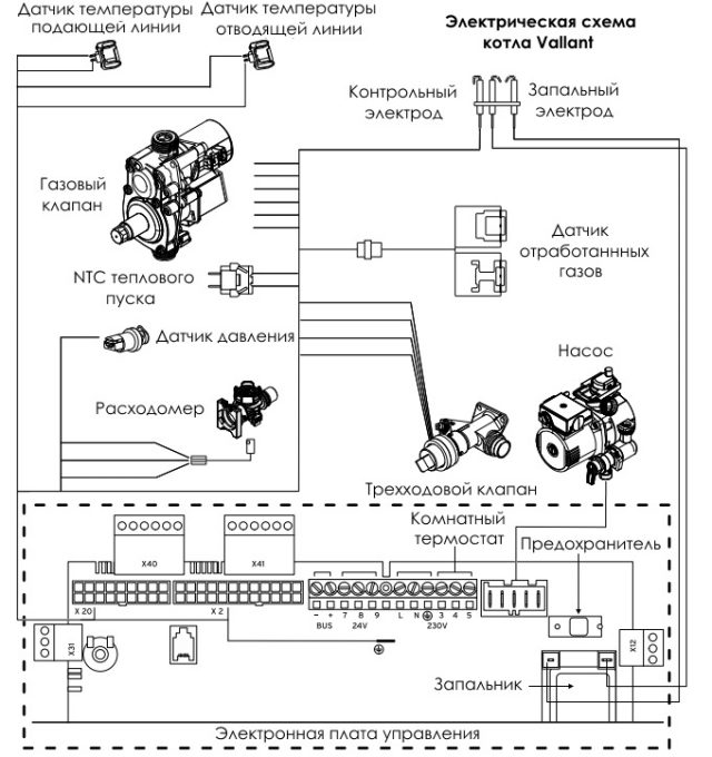 Изучим конструкцию котла Вайлант, опираясь на изображения и схемы из монтажного руководства. Для корректной настройки во время установки и диагностики неисправностей крайне важна принципиальная электрическая схема. Она демонстрирует, как именно подключаются все компоненты устройства к электрической плате управления.