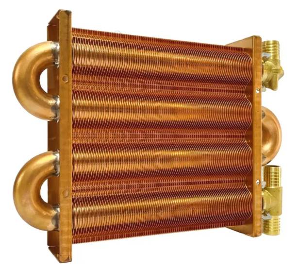 К теплообменнику подключены два трубопровода: один для подачи, другой для обратного потока. В большинстве традиционных нагревательных устройств теплообменник изготавливается из меди.